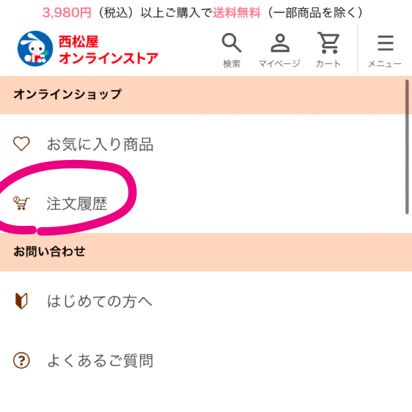 「注文履歴」に表示される商品は、オンラインストアで会員登録・ログイン後にご注文いただいた商品です。